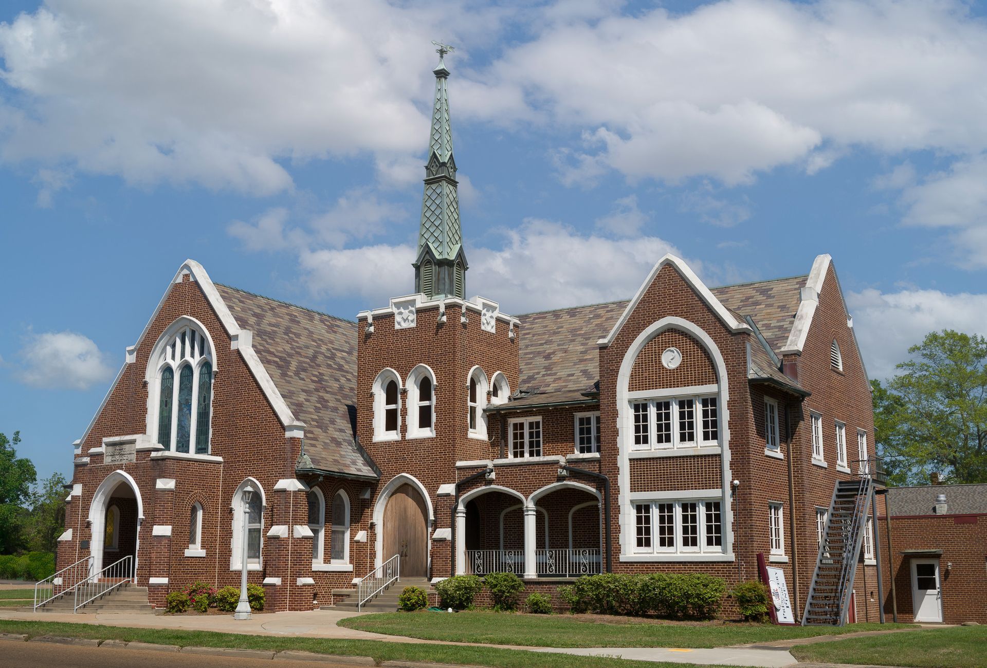 In 1921, during a congregational meeting, it was voted to construct a new church building on the current Bonner Street site. That building, in classic Neo-Gothic Revival style, was completed for its first worship service in June, 1924. The original structure is today the main sanctuary. It included a pipe organ (renovated in 1978) and two stained glass windows. The building is included in the National Register of Historic Places.